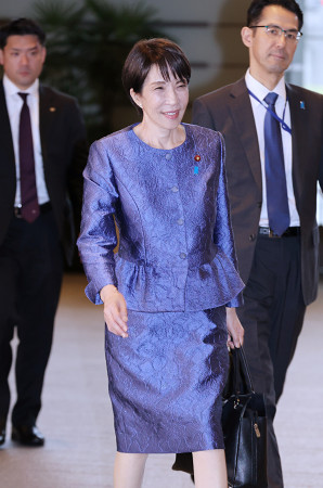 高市早苗首相は来年3月にも就任後では初めて米国を訪問し、トランプ大統領と会談を行う方向で検討に入った。写真は首相官邸に入る高市首相=24日、東京・永田町 【時事通信社】