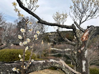 薬師池公園(町田市野津田町)の梅林でウメが見頃を迎えている。