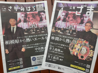 5月2日に東京ドームで行われる井上尚弥選手と中谷潤人選手の世界タイトルマッチを前に、相模原市と座間市が4月1日、コラボ広報紙を発行した。