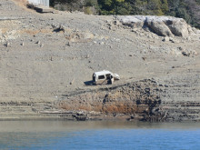 記録的な少雨の影響により、相模川水系のダム湖で貯水率が著しく低下し、普段は水底に沈んでいる光景が姿を現している。