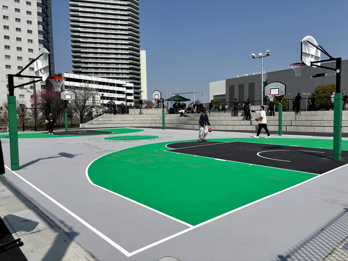 バスケットボールエリアでは、従来の一般用3基、ミニバス用1基から、一般用4基、ミニバス用2基へとゴール数を拡充。(関連記事